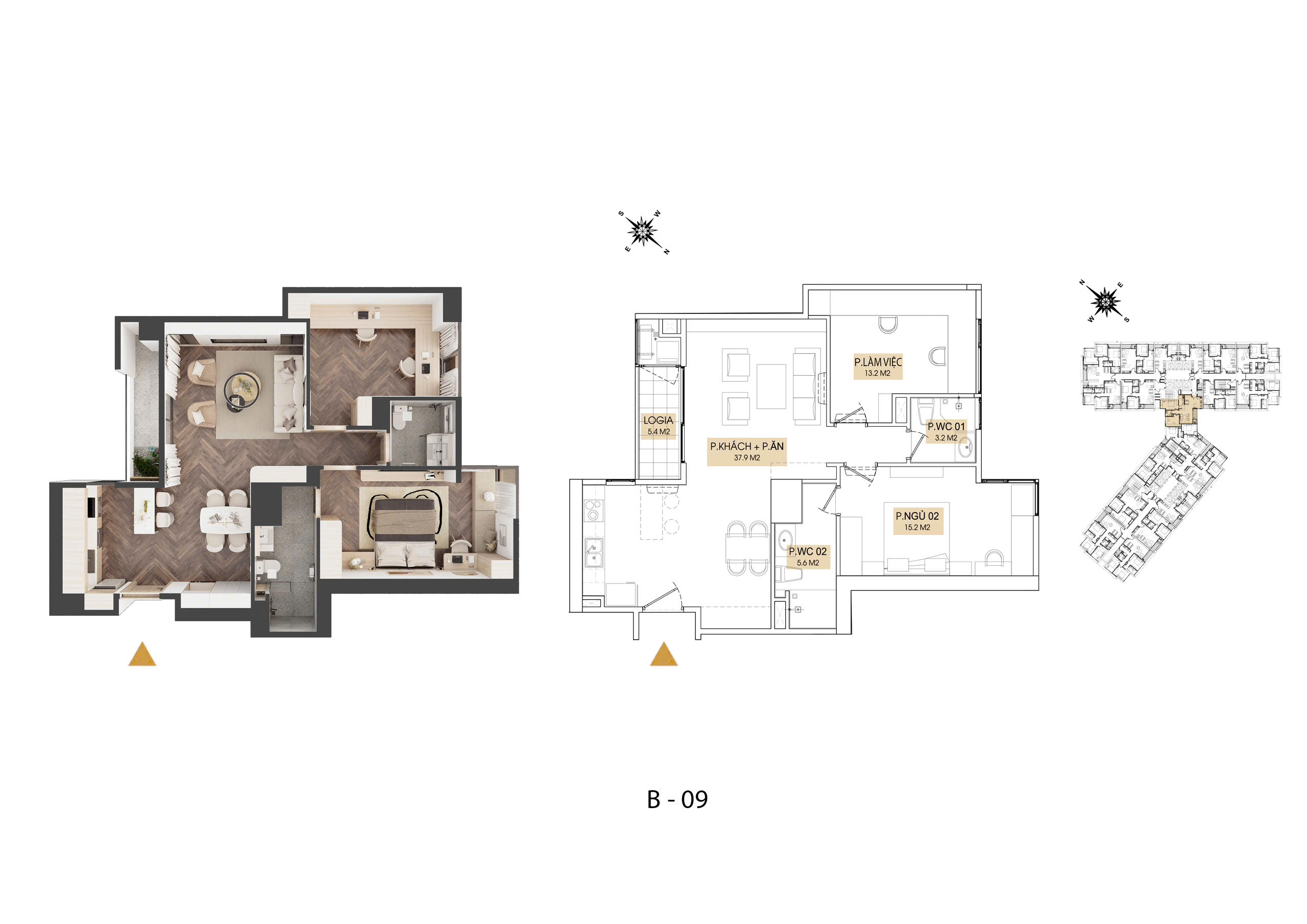 – Diện tích căn hộ từ: 43m2 – 45,6 – 65,5 – 67,8 – 74,2 – 82 – 98 – 103 – 122,6m2